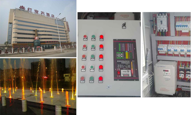 音樂噴泉系統中諧波干擾信號會經過音頻放大系統放大后,形成刺耳的噪音并影響音樂的播放。調試時若遇到這種情況可采取以下措施:降低變頻器載波頻率;變頻器可靠接地,接地線采用線徑較粗的線,并且接地點與變頻器距離要盡量短;變頻器輸入、輸出動力線盡量遠離音頻信號線和控制線,不要將動力線與控制線走在同一線槽中;音頻信號放大系統的電源盡可能與變頻器供電電源隔離等。